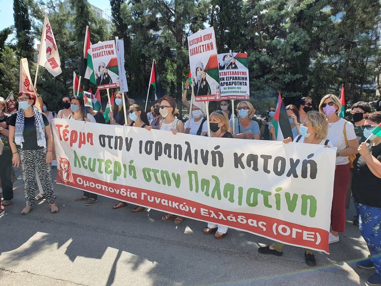 Καταγγέλλουμε την κυβέρνηση της Ν.Δ. που συνεχίζει την πολιτική του ΣΥΡΙΖΑ και αναβαθμίζει την πολιτική, οικονομική, στρατιωτική συνεργασία με το δολοφονικό κράτος του Ισραήλ, ενώ και οι δύο αρνήθηκαν να υλοποιήσουν την ομόφωνη απόφαση της Ελληνικής Βουλής του 2015 για αναγνώριση ανεξάρτητου Παλαιστινιακού κράτους. Απαιτούμε να τερματιστεί η Ισραηλινή κατοχή και οι εποικισμοί στα Παλαιστινιακά εδάφη. Να επιστρέψουν οι πρόσφυγες στα σπίτια τους. Να ελευθερωθούν οι πολιτικοί κρατούμενοι από τις Ισραηλινές φυλακές. Απαιτούμε Παλαιστίνη ελεύθερη στα όρια του 1967, με τον λαό κυρίαρχο και πρωτεύουσα την Ανατολική Ιερουσαλήμ.