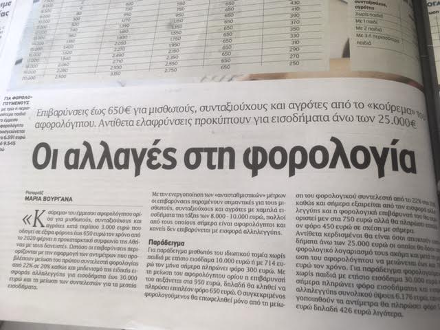 Όσο για τη μείωση του αφορολόγητου είναι απλώς «Οι αλλαγές στη φορολογία»! Γενικά και αόριστα.
