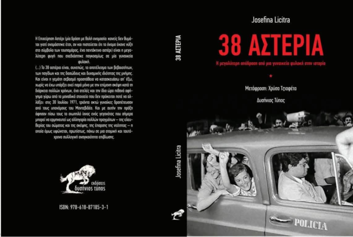 Το 38 αστέρια είναι, συνεπώς, το αποτέλεσμα των βεβαιοτήτων, των παγίδων και της δασώδους και δυναμικής ιδιότητας της μνήμης. Και είναι η γεμάτη σεβασμό προσπάθεια να κατασκευάσω απ’ έξω, χωρίς να έχω υπάρξει εκεί παρά μόνο με την επίμονη σκέψη κατά τη διάρκεια πολλών χρόνων, ένα ατελές και την ίδια ώρα πιθανό αφήγημα γύρω από το μοναδικό στοιχείο που δεν πρόκειται ποτέ ν’ αλλάξει: στις 30 Ιουλίου 1971, τριάντα οκτώ γυναίκες δραπέτευσαν από τους υπονόμους του Μοντεβιδέο. Και με αυτήν την πράξη άφησαν πίσω τους το σιωπηλό αποτύπωμα ενός γεγονότος που σήμερα μπορεί να ερμηνευτεί ως αλληγορία πολλών πραγμάτων – της ελευθερίας του σώματος και της σκέψης, της έπαρσης της νεότητας – αλλά που υψώνεται, κυρίως, πάνω σε μια ατομική και ταυτόχρονα συλλογική αναγκαιότητα επιβίωσης.