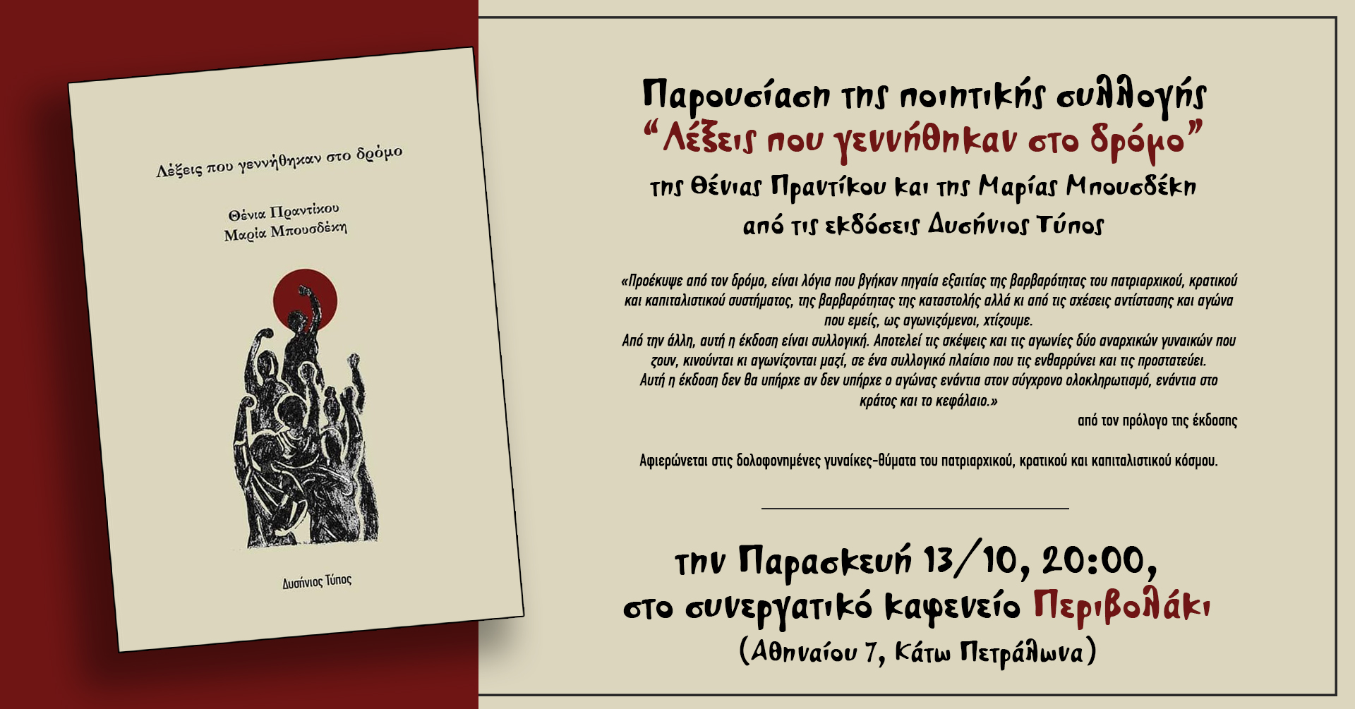 «Προέκυψε από τον δρόμο, είναι λόγια που βγήκαν πηγαία εξαιτίας της βαρβαρότητας του πατριαρχικού, κρατικού και καπιταλιστικού συστήματος, της βαρβαρότητας της καταστολής αλλά κι από τις σχέσεις αντίστασης και αγώνα που εμείς, ως αγωνιζόμενοι, χτίζουμε.