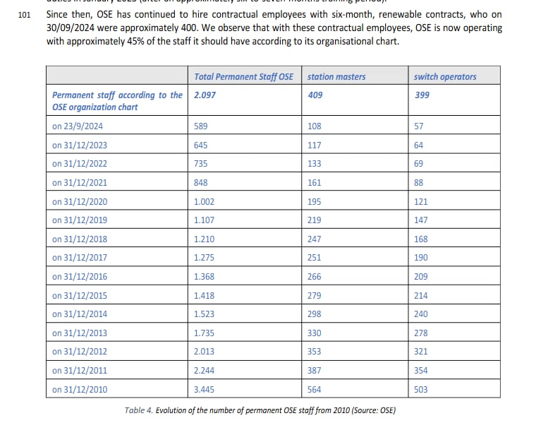 As stated in the report, OSE (Hellenic Railways Organization) repeatedly hired workers on six-month contracts, which were renewed. By 30/09/2024, approximately 400 such workers were employed.