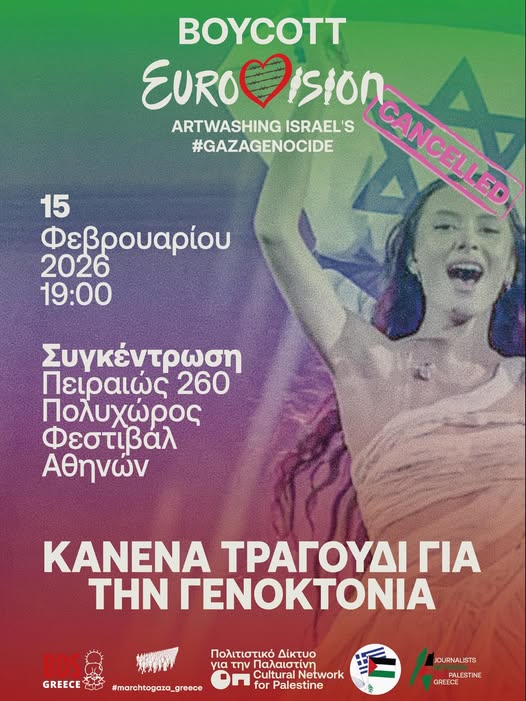 Η Εurovision είναι ένας θεσμός που λειτουργεί ως ένα καλά σχεδιασμένο πλυντήριο των εγκλημάτων του Ισραήλ μέσω της τέχνης. Μέσα από τη Eurovision το καθεστώς εποικιστικής αποικιοκρατίας Ισραήλ επιδιώκει να προβληθεί στη διεθνή κοινότητα ως ένα “κανονικό κράτος” ενώ την ίδια στιγμή συνεχίζει να διαπράττει γενοκτονία, εθνοκάθαρση και ισχυροποίηση του απαρτχάιντ στην Παλαιστίνη υπό το μανδύα της “εκεχειρίας”.