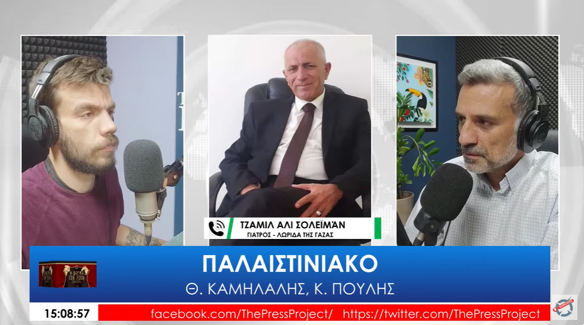 Η πόλη, όπου μεγάλωσε και ζούσε, είναι πλέον βομβαρδισμένο τοπίο. Το νοσοκομείο, όπου εργαζόταν, το κατέστρεψαν. «Έχουν καταστρέψει δρόμους, πανεπιστήμια, τζαμιά, πολυκατοικίες, μαγαζιά… Ό,τι μπορεί να φανταστεί κανείς. Έχουν σκοτωθεί ολόκληρες οικογένειες μέσα σε πολυκατοικίες» λέει. Τα δυτικά Μέσα καλύπτουν μονόπλευρα αυτό που εκτυλίσσεται στη Μέση Ανατολή, χωρίς να δείχνουν της βαρβαρότητα που δέχονται οι Παλαιστίνιοι από το Ισραήλ. «Τα media βλέπουν από το ένα μάτι» λέει ο Τζαμίλ Αλί, «και κλείνουν το άλλο, χωρίς να βλέπουν αυτά που γίνονται εδώ επί 70 χρόνια».