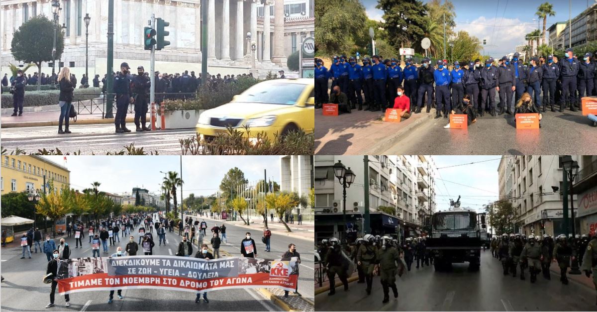 Καθεστωτικά λοιπόν, η κυβέρνηση προσπάθησε εδώ και μία εβδομάδα να ιδεολογικοποιήσει το ζήτημα, προκαλώντας πολιτική σύγκρουση ώστε να καλυφθούν οι ευθύνες της. Φάινεται ότι ο Μητσοτάκης προσπάθησε να βάλει σε εφαρμογή το ντροπιαστικό σχέδιο «κόκκινη Χρυσή Αυγή», με επίθεση στο ΚΚΕ, μέσα στη Βουλή. Η τελευταία φορά, για τους λάτρεις της στατιστικής, που το ΚΚΕ κρινόταν με κάποιον τρόπο παράνομο, ήταν μία πολύ κακή περίοδος. Συνάντησε ευτυχώς κοινό μέτωπο 3 κομμάτων, με τον ΣΥΡΙΖΑ μέσα σε αυτά, μαζί με μία ανακοίνωση από έναν θεσμικό φορέα, την Ένωση Δικαστών και Εισαγγελέων, που έστειλε το μήνυμα αντισυνταγματικότητας της απαγόρευσης συναθροίσεων σε όλο το πολιτικό φάσμα, αναγκάζοντας όλα τα ΜΜΕ να προβάλλουν την καταγγελία. Αν δεν το είχε κάνει όλο αυτό η κυβέρνηση, θα βλέπαμε μικρές πορείες, με μεγάλες αποστάσεις και παράλληλα προστασία του δικαιώματος στη διαμαρτυρία. Τώρα είδαμε μικρές πορείες με μεγάλες αποστάσεις και στη συνέχεια μεγάλους συγχρωτισμούς λόγω των χιλιάδων αστυνομικών και της καταστολής. Είναι κάπως δύσκολο να κρατήσεις τη μάσκα σου ή τις αποστάσεις όταν πνίγεσαι στο χημικό ή όταν τρως ξύλο.