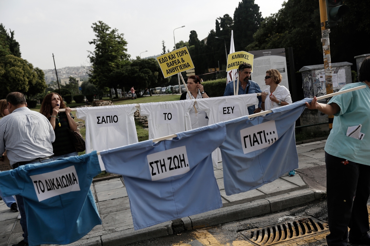 Την πορεία ακολούθησαν εργαζόμενοι των νοσοκομείων «Θεαγένειο», ΑΧΕΠΑ, «Άγιος Δημήτριος» και «Γ. Γεννηματάς».