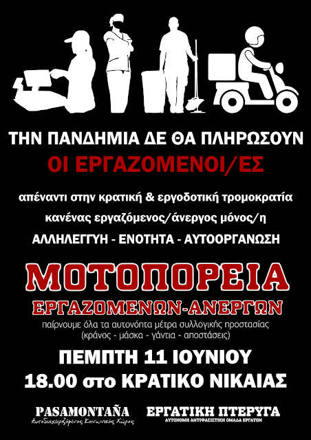 Σημειώνεται πως η μοτοπορεία ήταν για τα εργατικά δικαιώματα, με τους διοργανωτές να εκφράζουν την αλληλεγγύη τους στους εργαζομένους που σηκώνουν το βάρος της πανδημίας. «Την πανδημία δεν θα πληρώσουν οι εργαζόμενοι/ες», ήταν το κεντρικό σύνθημα.