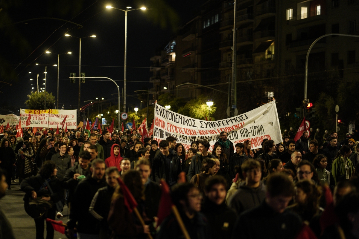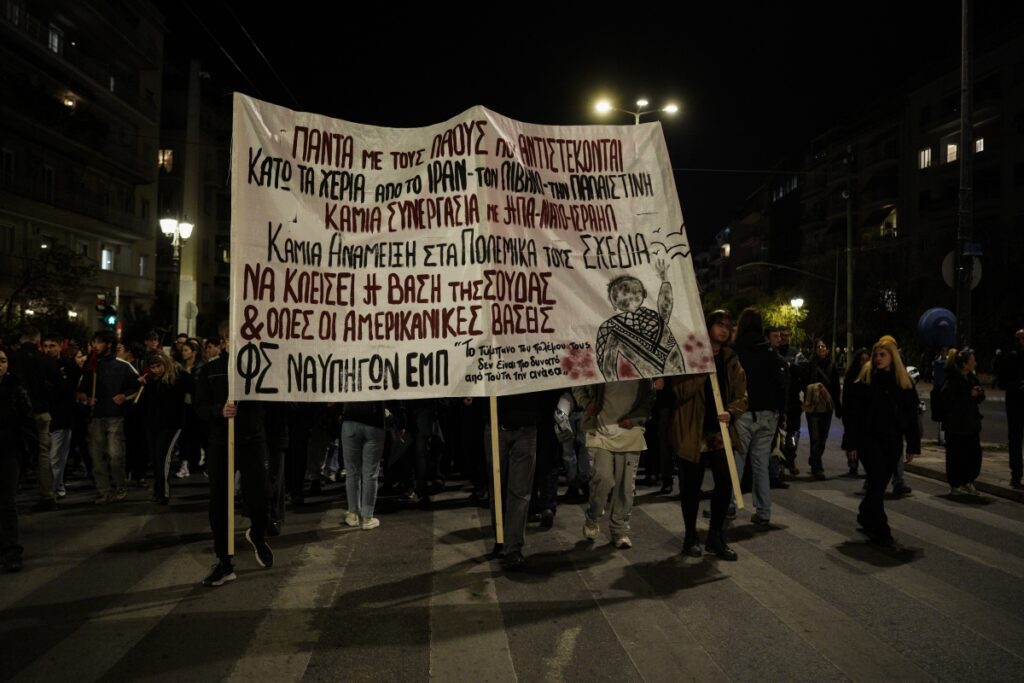 Η συγκέντρωση ξεκίνησε στις 19:00 το απόγευμα στο Σύνταγμα και λίγο μετάτις 19:30 οι διαδηλωτές/τριες ξεκινήσαν πορεία προς την Αμερικανική Πρεσβεία. Ισχυρή ήταν η παρουσία των ΜΑΤ κατά τη διάρκεια της κινητοποίησεις, ενώ κλούβες της ΕΛ.ΑΣ βρίσκονταν σταθμευμένες έξω από την πρεσβεία των ΗΠΑ. Κόμματα και οργανώσεις της Αριστεράς, αναρχικές συλλογικότητες και Φοιτητικοί Σύλλογοι ένωσαν της φωνές τους, με κεντρικά μηνύματα το κλείσιμο των αμερικανικών βάσεων, την πλήρη απεμπλοκή της χώρας από τους ιμπεριαλιστικούς πολέμους, την καταδίκη των ΗΠΑ – Ισραήλ και τη στήριξη στον λαό του Ιράν.