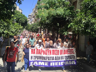 Παραπάνω από ένα μήνα, τόσο στο Δ.Σ., όσο και με συνεχή απεύθυνση στους συναδέλφους και τις συναδέλφισσες στον Πειραιά, αλλά και σε άλλα σωματεία, προσπαθήσαμε να έχουμε το θέμα των διώξεων στην ημερήσια διάταξη της δράσης μας. Στην αρχή με επισκέψεις στα σχολεία, στη συνέχεια με μαζική παρουσία στις συγκεντρώσεις και ταυτόχρονα με τις αλλεπάλληλες και επίμονες προτάσεις μας στο Δ.Σ. για άμεση κινηματική απάντηση στο κύμα των διώξεων, αποδεικνύοντας ότι μόνο ο δρόμος και η αγωνιστική κινητοποίηση από τα κάτω αποτελούν απάντηση στη διοίκηση, την κυβέρνηση και το κράτος. Σημαντικό ρόλο διαδραμάτισε η επίσης επιτυχημένη συγκέντρωσης που οργανώσαμε την Παρασκευή 30/6, ως μια πρώτη, άμεση απάντηση στις κλήσεις για παραπομπή στο πειθαρχικό. Τέλος, τις προηγούμενες μέρες, προχωρήσαμε σε αφισοκόλληση στις γειτονιές του Πειραιά, ώστε να ενημερώσουμε τον λαό της πόλης, αλλά και να προπαγανδίσουμε τη σημερινή κινητοποίηση.