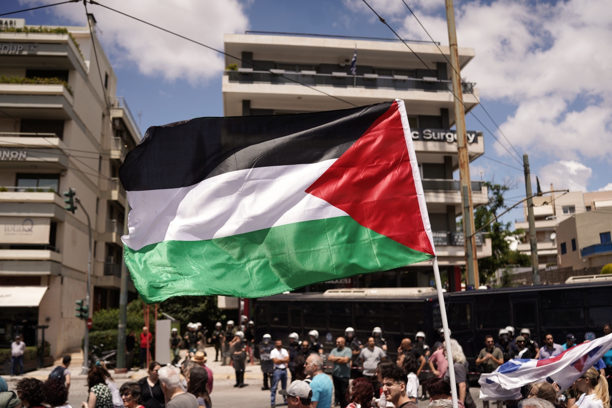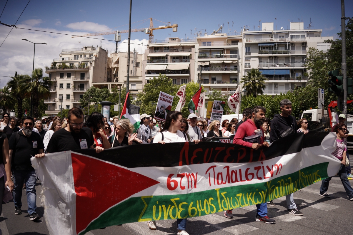 Οι διαδηλωτές απαίτησαν να σταματήσει η γενοκτονία των Παλαιστινίων στη Γάζα και να διακοπεί η συνεργασία της ελληνικής κυβέρνησης με το κράτος του Ισραήλ.