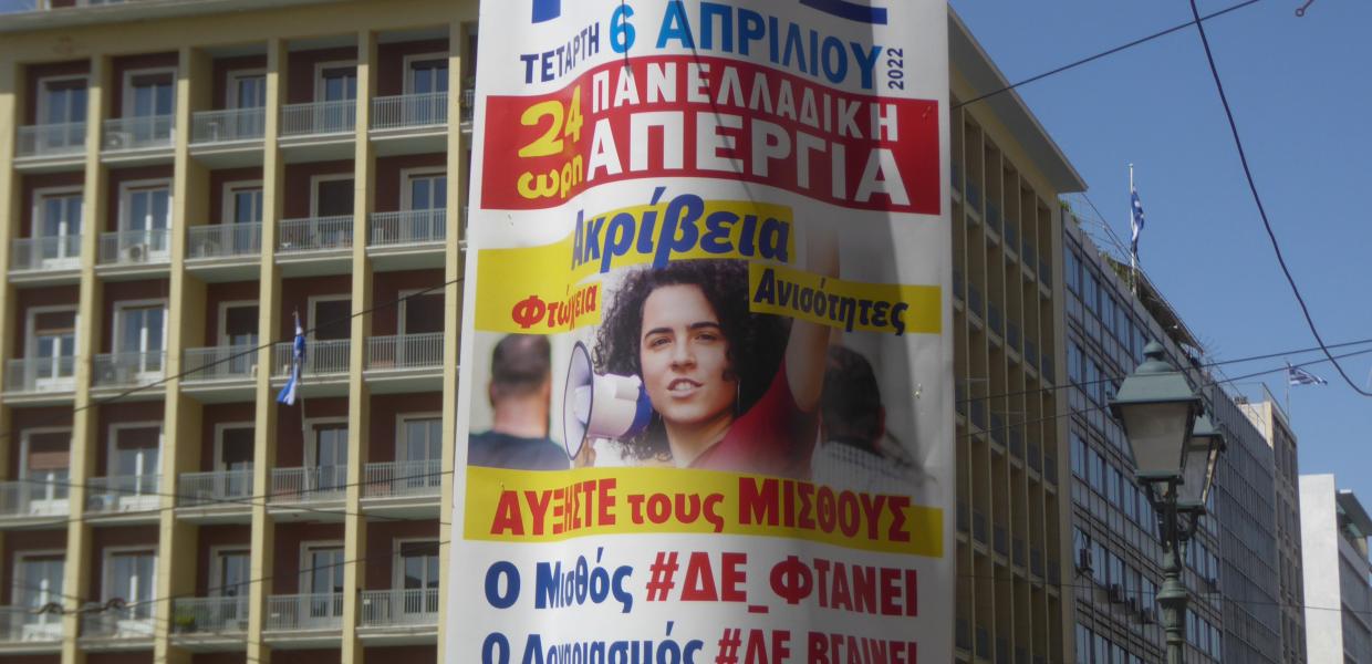 Κεντρικό σύνθημα της πανελλαδικής απεργίας που προκήρυξαν ΓΣΕΕ και ΑΔΕΔΥ το «ο μισθός δεν φτάνει, ο λογαριασμός δεν βγαίνει», με δεκάδες συνδικάτα του δημόσιου και του ιδιωτικού τομέα να ζητάνε άμεσα μέτρα στήριξης και αξιοπρεπούς διαβίωσης των νοικοκυριών και αυξήσεις στους μισθούς των εργαζομένων. Οπως αναφέρεται στο απεργιακό κάλεσμα της ΓΣΕΕ, εδώ και 14 χρόνια οι εργαζόμενοι σηκώνουν στις πλάτες τους τα βάρη μιας κρίσης που διαρκώς βαθαίνει και επηρέασε τα εισοδήματα, τα δικαιώματα αλλά και τις ζωές όλων.
