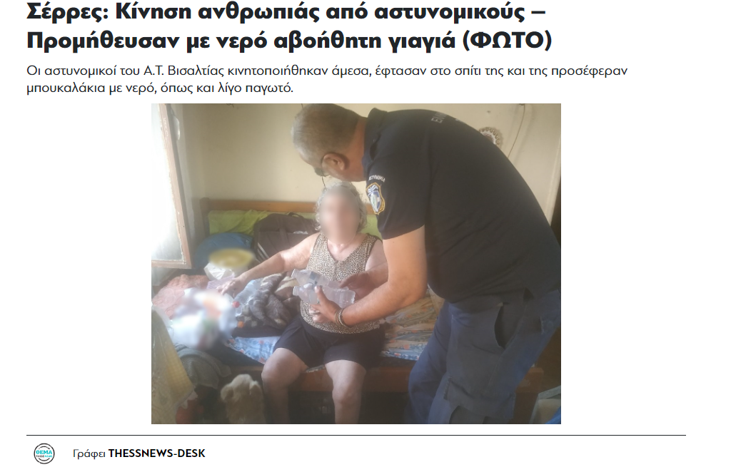 Η Ελληνική Αστυνομία έδωσε νερό σε μια γιαγιά, η οποία τηλεφώνησε στους αστυνομικούς κι έκτοτε με απανωτά ποστ διαφημίζει τον εαυτό της, μετά την εικόνα που έχει δημιουργήσει με τα πολλά περιστατικά βίας.