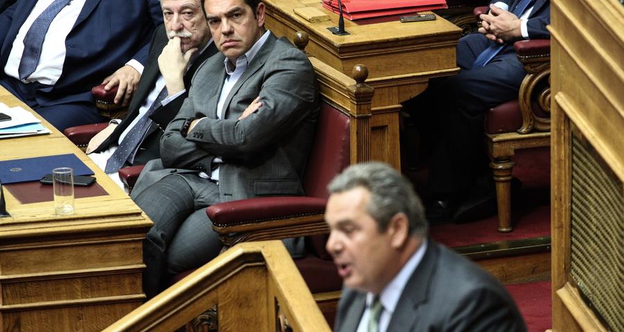Και σας το αφιερώνω κυρίως γιατί πιστεύω ότι σε λίγα χρόνια από σήμερα, ίσως και σε λίγους μήνες, αυτό που θα μείνει στην ιστορία είναι τα θετικά που πράξατε 4 χρόνια τώρα. Σας διαβεβαιώνω ότι θα με ευγνωμονείτε που αντιλήφθηκα έγκαιρα τον πολιτικό σας σχεδιασμό σας να ανατρέψετε την κυβέρνηση που στηρίξατε επί 4 χρόνια, μπροστά σε ένα κρίσιμο εθνικό θέμα και θα με ευγνωμονείτε που απέτρεψα να καταγραφείτε στα κιτάπια της ιστορίας ως ένας νέος Αντώνης Σαμαράς. Και θα με ευγνωμονεί πιστεύω, όπως και η μεγάλη πλειοψηφία του ελληνικού λαού, αριστεροί και δεξιοί, διότι με θάρρος, με τόλμη με αποφασιστικότητα, προχώρησα μπροστά προκειμένου να λύσω ένα θέμα προς όφελος του εθνικού συμφέροντος προς όφελος της πατρίδας μας. Αυτό έπραξα κύριε Καμμένο».