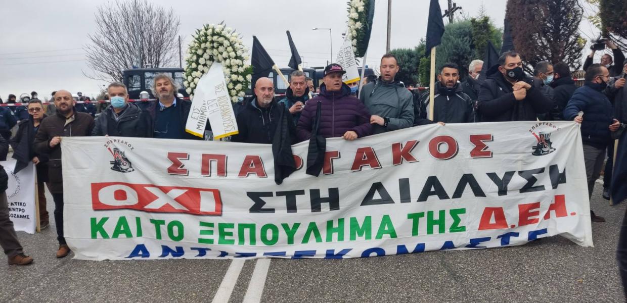 Οι εργαζόμενοι και οι πολίτες που με μαύρες σημαίες και στεφάνια στα χέρια περιμένουν να εκφράσουν την έντονη αντίδρασή τους στην πολιτική της κυβέρνησης Μητσοτάκη, που έδωσε βορά στα ξένα συμφέροντα τη ΔΕΗ, δέχθηκαν επίθεση από τα ΜΑΤ που έχουν εντολή να κρατήσουν σε μεγάλη απόσταση των διαδηλωτές προκειμένου να μην δυσαρεστηθεί ο Κυριάκος Μητσοτάκης.