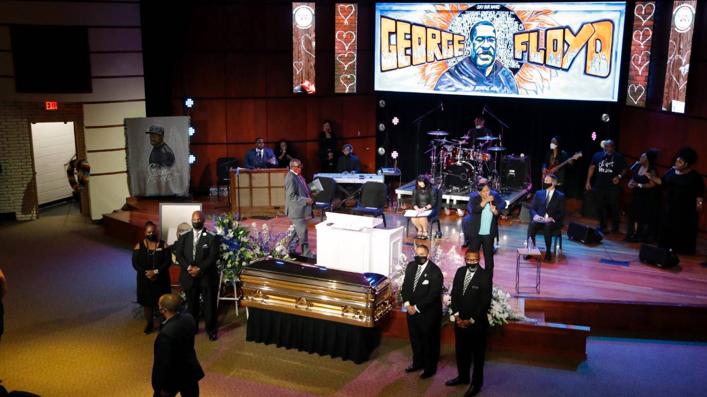 Εξάλλου τηρήθηκε σιωπή 8 λεπτών και 46 δευτερολέπτων, το χρονικό διάστημα κατά το οποίο ο αστυνομικός Ντέρεκ Σόβιν είχε το γόνατό του πάνω στον λαιμό του Φλόιντ παρά τις εκκλήσεις του.