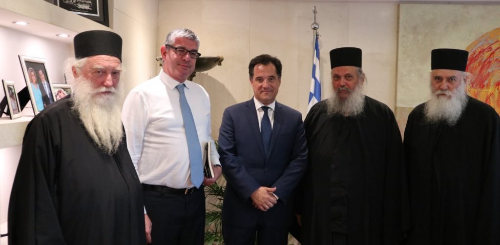 Συνάντηση με αντιπροσωπεία από την Ιερά Μονή Μεγίστης Λαύρας του Αγίου Όρους υπό τον Ιερομόναχο Νικόδημο είχε ο υπουργός Ανάπτυξης και Επενδύσεων, Άδωνις Γεωργιάδης και ο υφυπουργός του, Γιάννης Τσακίρης.