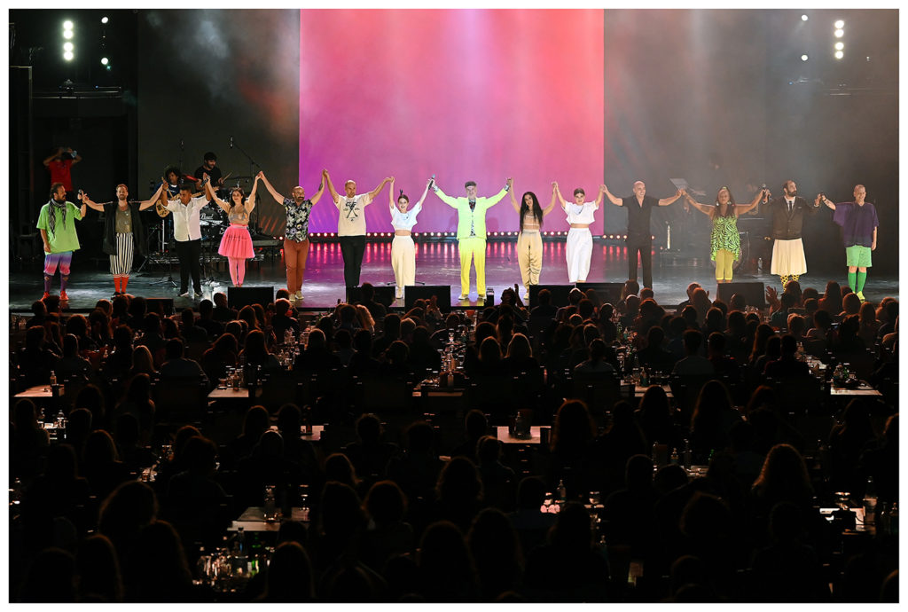 Η μόνη στιγμή που δεν μπόρεσα να συνδεθώ με όσα συνέβαιναν επί σκηνής, που «έφυγαν» από κει τα μάτια μου, ήταν στο νούμερο για τις «Άγριες Μέλισσες» – αλλά φέρω την ευθύνη: όταν δεν έχεις δει ούτε καν τίτλους έναρξης από ένα σήριαλ δύσκολο να καταλάβεις.. Κρίνοντας από τις αντιδράσεις των συνθεατών, όμως, ας πω ότι ο σχολιασμός φαινόταν ιδιαίτερα επιτυχής. Και με αναφορές στον τρόπο που η Ελληνική κοινωνία αλλάζει – λίγο δασκαλίστικες, στιγμές στιγμές, και λιγότερο φωτεινές από το σιωπηλό και μαζί εκκωφαντικό παράδειγμα που ήταν οι ίδιες οι παρουσίες επί σκηνής, νομίζω, όμως.