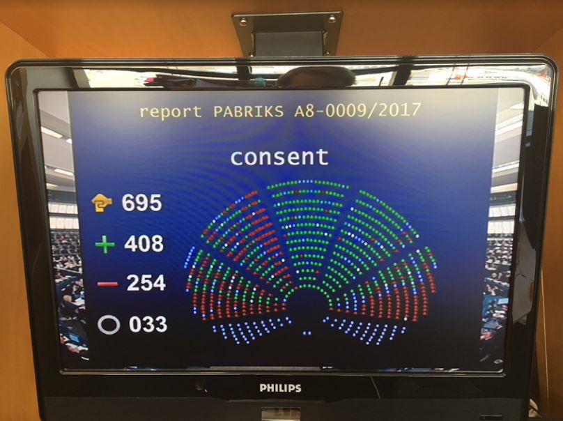 Από την ελληνική πλευρά, θετικά ψήφισαν όλοι οι ευρωβουλευτές της Νέας Δημοκρατίας (Μαρία Σπυράκη, Μανώλης Κεφαλογιάννης, Ελίζα Βόζενμπεργκ, Γιώργος Κύρτσος, Θοδωρής Ζαγοράκης), του Ποταμιού (Γεώργιος Γραμματικάκης, Μιλτιάδης Κύρκος) και η Εύα Καϊλή από το ΠΑΣΟΚ, ενώ ο Νίκος Ανδρουλάκης απουσίαζε.
