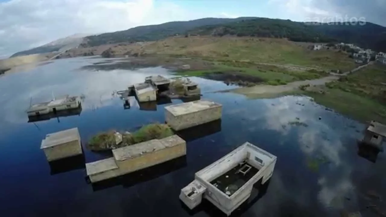 Aerial footage posted on YouTube by a local filmmaker using a drone shows the medieval village of Sfendyli on Crete, sinking in an artificial water reservoir.