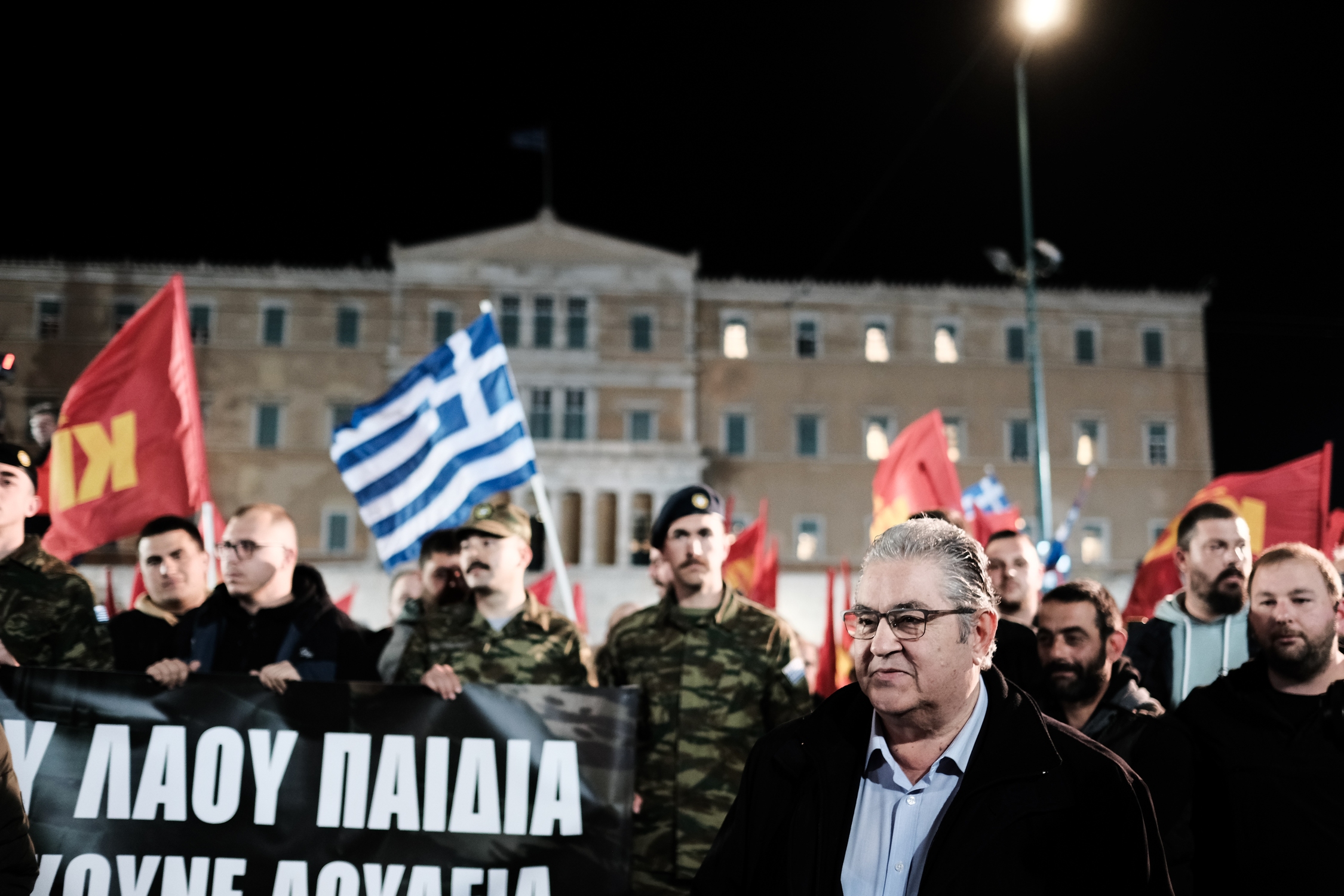 «Απόψε εδώ στην Αθήνα, στην πλατεία Συντάγματος, μ’ αυτό το μεγάλο συλλαλητήριο, με τα συλλαλητήρια που γίνονται ταυτόχρονα σε πολλές ακόμα μεγάλες πόλεις της χώρας, τα οποία θα συνεχιστούν αύριο και μεθαύριο, το Κομμουνιστικό Κόμμα Ελλάδας πραγματοποιεί μια σημαντική παρέμβαση στις εξελίξεις», σημειώνει , μεταξύ άλλων, ο γ.γ. της Κ.Ε. του ΚΚΕ.