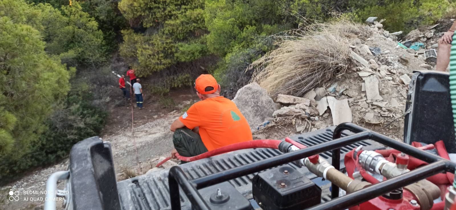«Οι σύντροφοι κατάφεραν να σώσουν 2 σπίτια το απόγευμα στο ρέμα του Αγίου Χαράλαμπου. Κάποια στιγμή η φωτιά περικύκλωσε το όχημα το δικό μας όπως και τα οχήματα άλλων εθελοντών με αποτέλεσμα να φύγουν όλοι πολύ γρήγορα για να μην εγκλωβιστούν αφήνοντας τις μάνικες» προσθέτει το στέλεχος του «Ρουβίκωνα».