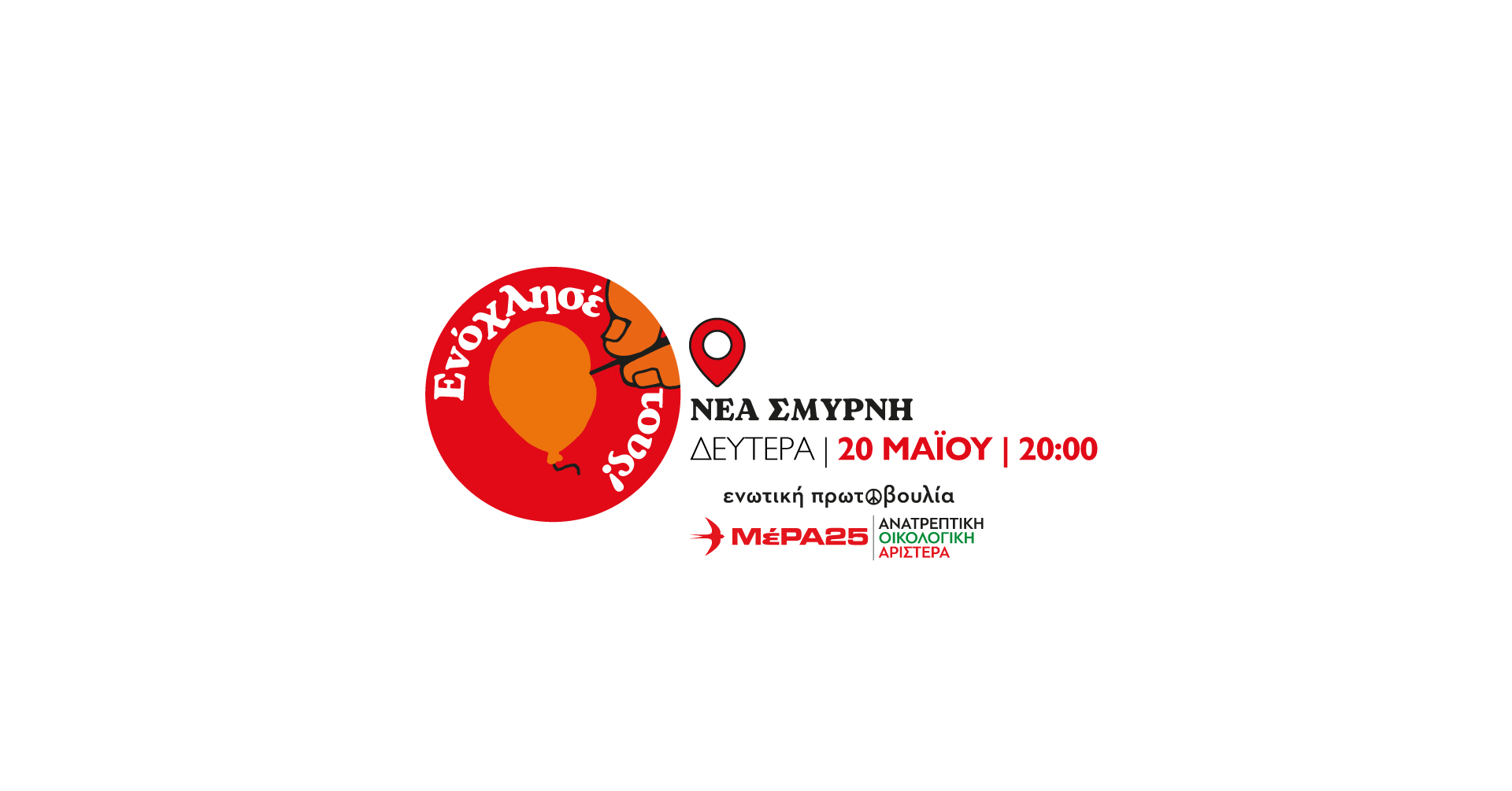 Τη Δευτέρα 20 Μαΐου ο Γιάνης Βαρουφάκης και ακόμα πέντε υποψήφιοι ευρωβουλευτές της ενωτικής πρωτοβουλίας ΜέΡΑ25 | Ανατρεπτική Οικολογική Αριστερά θα βρίσκονται στην κεντρική Πλατεία της Νέας Σμύρνης σε μια πολιτική εκδήλωση ενόψει των ευρωεκλογών της 9ης Ιουνίου.