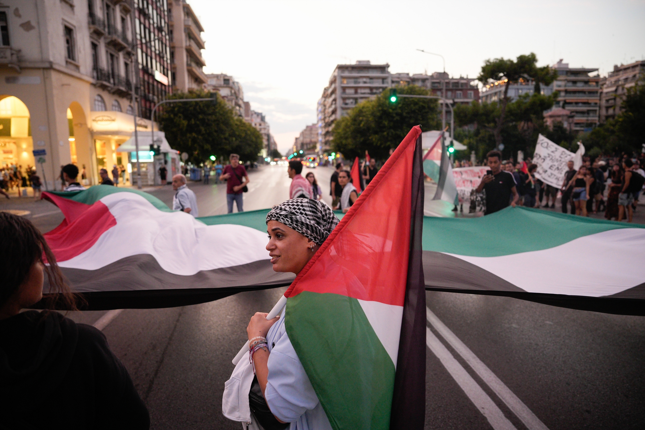 «Το κράτος τρομοκράτης κορυφώνει τη γενοκτονική επίθεση, με την ανεξέλεγκτη δολοφονία αμάχων και την καταστροφή κάθε κοινωνικού ιστού και οργάνωσης που έχει μείνει στη Γάζα. Είναι προκλητική, την ίδια ώρα που μαίνεται η γενοκτονία του παλαιστινιακού λαού με τη νέα πολεμική επιχείρηση ” Άρματα του Γεδεών ΙΙ”, η παρουσία οπαδών της Μακάμπι Τελ Αβίβ στην πόλη της Θεσσαλονίκης στα πλαίσια προγραμματισμένου ποδοσφαιρικού αγώνα.