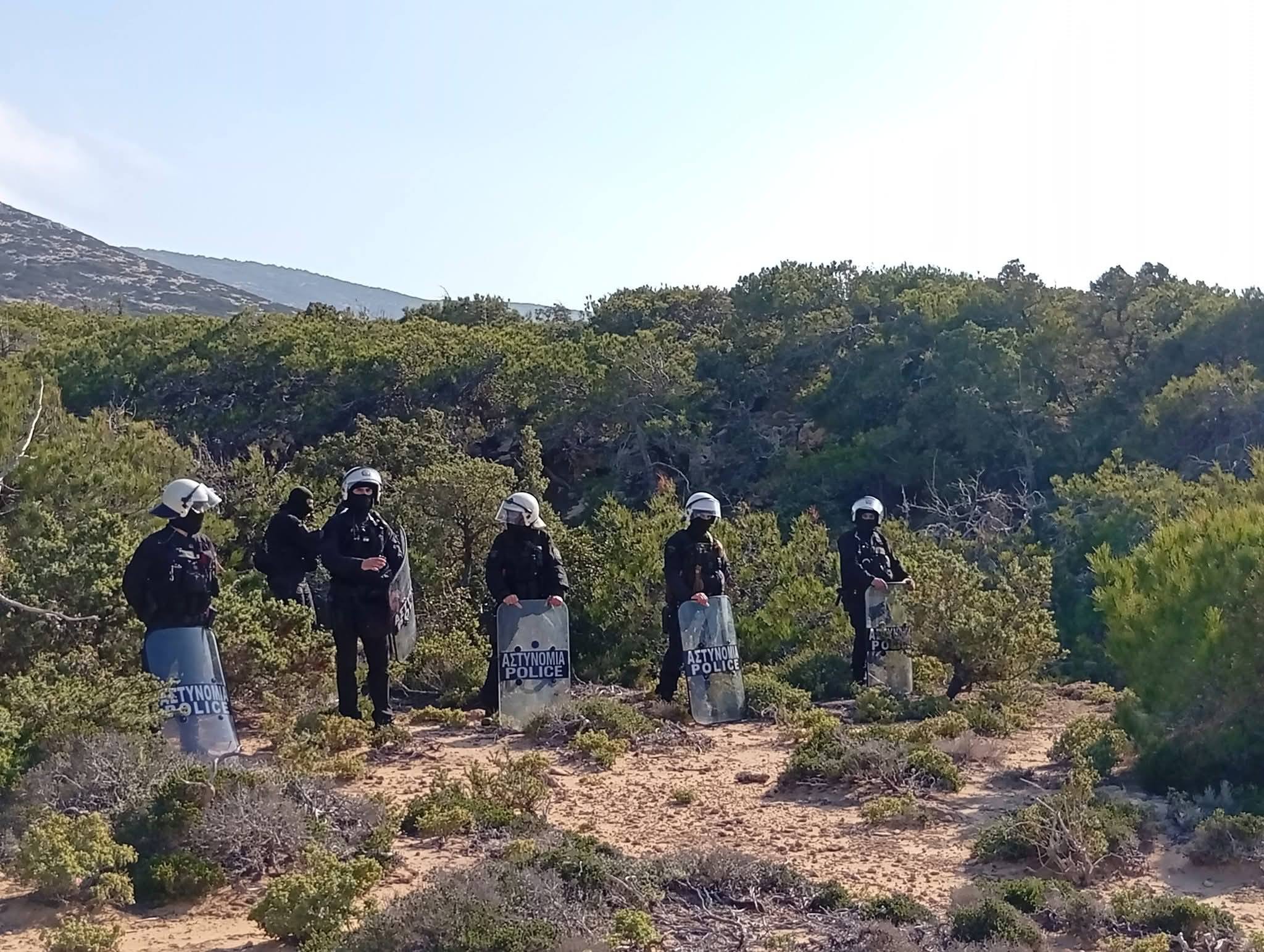 Ζητάμε επίσης την άμεση αποχώρηση των μηχανημάτων του Δασαρχείου και της Αποκεντρωμένης Διοίκησης Κρήτης που λειτουργούν ως υποχείρια για την ικανοποίηση των επιθυμιών της δημάρχου αλλά και ως μακριά χέρια της κυβέρνησης που ευνοεί τα σχέδια των φίλων της μεγαλοξενοδόχων.»