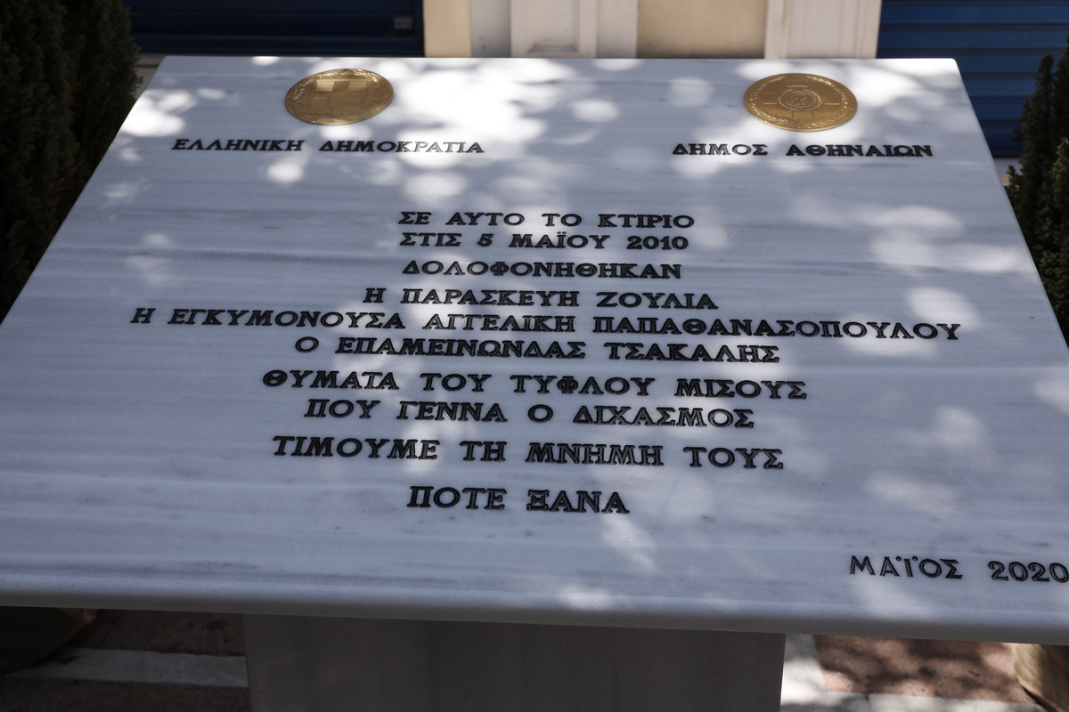 Ωστόσο, της«πρωτοβουλίας Μητσοτάκη» είχε προηγηθεί η η δημοσιοποίηση των μεθοδεύσεων της κυβέρνησης, που από τον Νοέμβριο του 2019 επιχειρούσε να σύρει τους συγγενείς των θυμάτων στα δικαστήρια διεκδικώντας πίσω τις αποζημιώσεις που επιδίκασε η δικαιοσύνη, και μάλιστα με τόκο, μόλις μία ημέρα πριν την επικοινωνιακή φιέστα έξω από το τραγικό κατάστημα της τράπεζας με την τοποθέτηση πλακέτας.