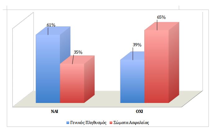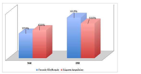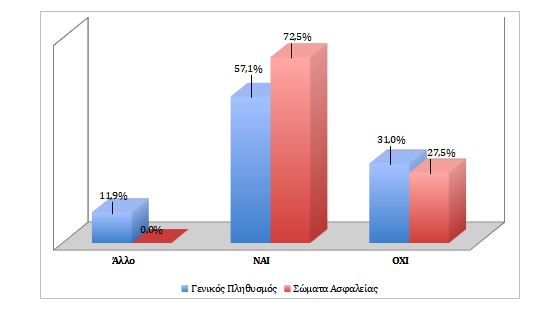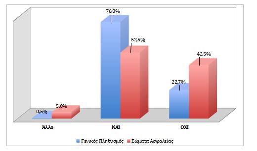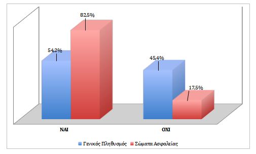 Οι ερωτήσεις 17-18 επικεντρώνονται στο ζήτημα της εσωτερικής ασφάλειας και της αστυνόμευσης. Πιο συγκεκριμένα, χρησιμοποιώντας και πάλι μια έκφραση που είναι προσφιλής στο εκφραστικό σύμπαν τα άκρας δεξιάς, ένα ποσοστό 54,20% συμφωνεί ότι «παλιά κοιμόμασταν με τις πόρτες ανοιχτές», το οποίο υποδεικνύει μια νοσταλγία για ένα φαντασιακό «ασφαλές», γεγονός που πιθανώς εξηγεί γιατί το 51,30% συμφωνεί με την πρακτική της αύξησης της αστυνόμευσης που εφαρμόζει η κυβέρνηση, με τα Σώματα Ασφαλείας να σημειώνουν και πάλι πολύ μεγαλύτερα ποσοστά (82,50% και στις δύο ερωτήσεις).