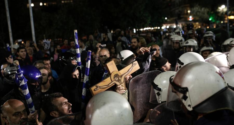 Εντάσεις σημειώνονται τις τελευταίες ημέρες έξω από το κινηματοθέατρο «Αριστοτέλειο» καθώς άτομα τα στην πλειοψηφία τους φέρονταν να είναι μέλη της οργάνωσης «Ιερός Λόχος» κρατώντας σταυρούς στα χέρια και μαύρες σημαίες προσπαθούν να ματαιώσουν την παράσταση «Η Ώρα του Διαβόλου» που είναι βασισμένη στο ομώνυμο κείμενο του Φερνάρντο Πεσσόα.