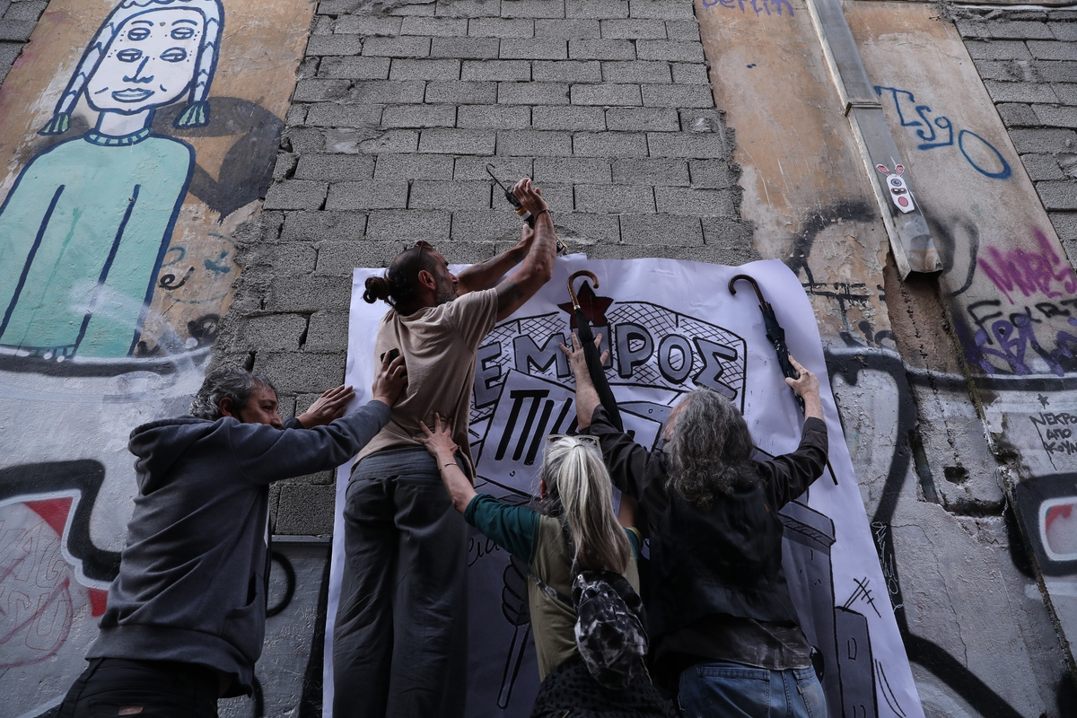 Για δεύτερη ημέρα φωνές, χρώματα και μουσικές καλύπτουν τα στενά γύρω από το Ελεύθερο Αυτοδιαχειριζόμενο Θέατρο «Εμπρός», ως ένδειξη διαμαρτυρίας στην εκκένωση και το τσιμέντωμα του Θεάτρου από την ελληνική αστυνομία την Τετάρτη.