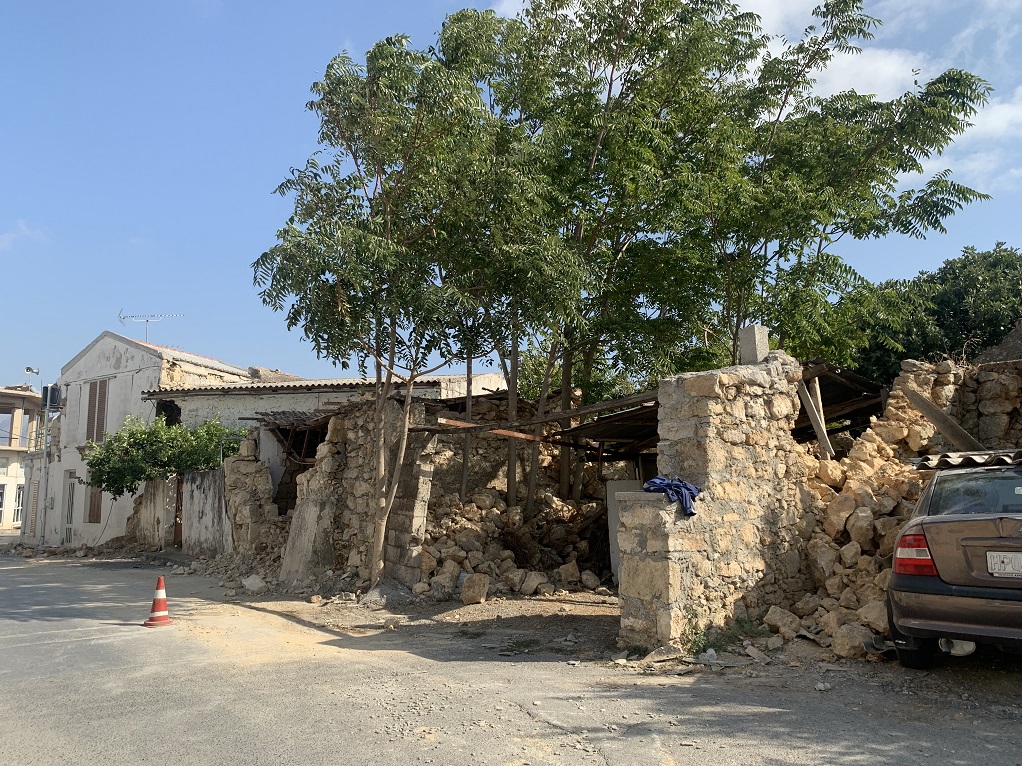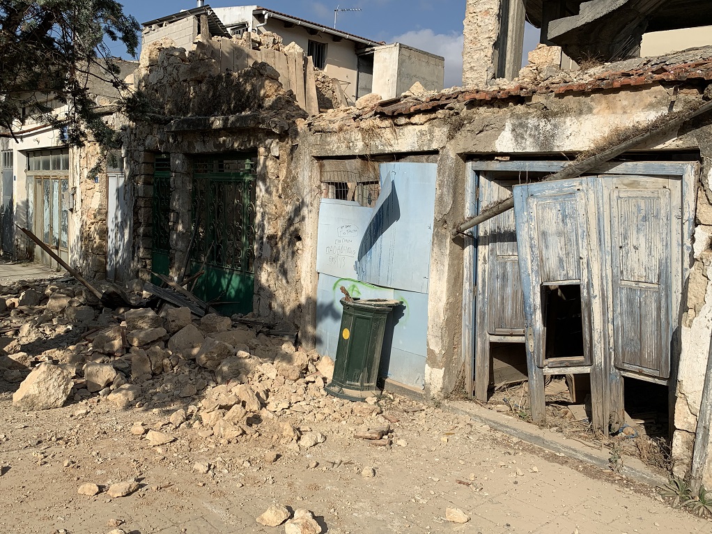 Περπατώντας στο Χουμέρι, παρατηρεί κανείς ότι σε πολλούς τοίχους, έχουν σχεδιαστεί από τα αρμόδια κλιμάκια τα γνωστά «κίτρινα Χ», τα οποία μαρτυρούν ότι ένα κτίριο είναι εντελώς ακατάλληλο λόγω του σεισμού. Ο κ. Ελπιδοφόρου ωστόσο, μας ενημερώνει ότι τα συγκεκριμένα κίτρινα Χ δεν σχεδιάστηκαν τώρα, καθώς δεν έχει επισκεφθεί κανένα κλιμάκιο την περιοχή, αλλά είναι… από άλλο σεισμό.