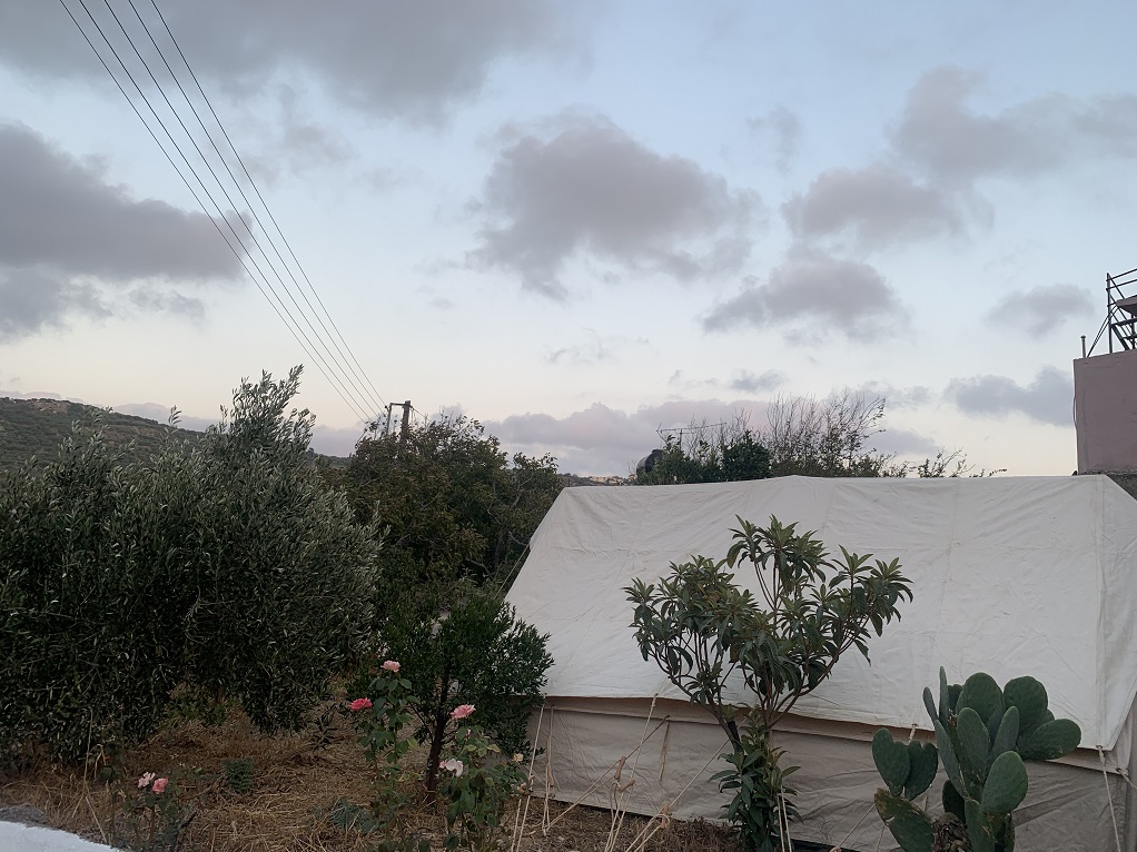 «Καλώς ήρθατε στο νέο μας σπίτι», μας είπε μία μητέρα, η οποία έμενε μόνιμα στο Αρκαλοχώρι με τα πέντε από τα επτά παιδιά της και τον άνδρα της, όταν μας ξεναγούσε στη σκηνή. Μέσα δεν υπήρχαν πολλά πράγματα. Επτά ράντζα, κλινοσκεπάσματα και ότι πρόλαβαν να φέρουν από το σπίτι τους αμέσως μετά την καταστροφή.