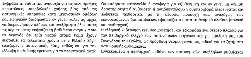 Αξίζει να σημειωθεί ότι στην 4η ετήσια έκθεσή της για τη Βία κατά των γυναικών, η Γενική Γραμματεία Ισότητας και Ανθρωπίνων Δικαιωμάτων, που μετονομάστηκε και μεταφέρθηκε από την κυβέρνηση στο Υπουργείο Κοινωνικής Συνοχής και Οικογένειας, προκαλώντας αντιδράσεις, αποδέχεται τις «επισημάνσεις», όπως τις χαρακτηρίζει, της Grevio (σελ. 29)