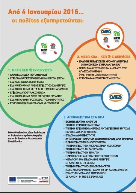 Στην παρακάτω φωτογραφία, ο ΟΑΕΔ εξηγεί αναλυτικά ποιές υπηρεσίες θα εκτελούνται πλέον μέσω διαδικτύου και ΚΕΠ: