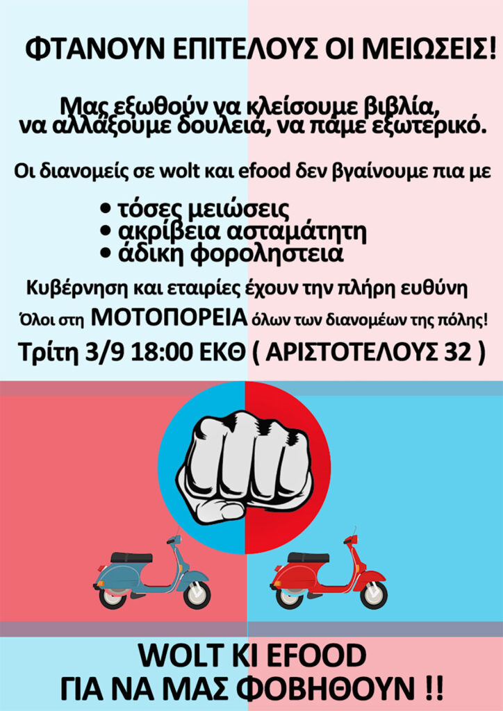 Κυβέρνηση και εταιρείες έχουν την πλήρη ευθύνη. Όλοι στη μοτοπορεία όλων των διανομέων της πόλης.