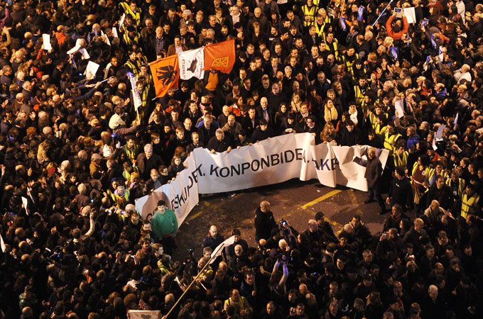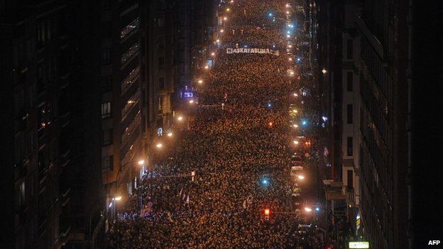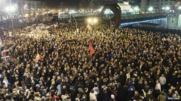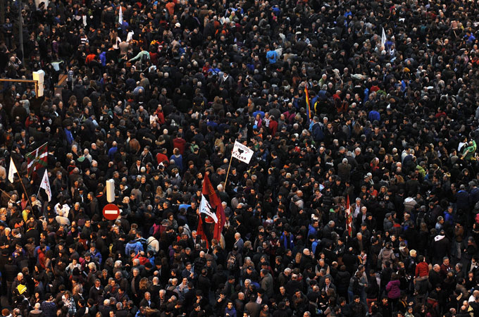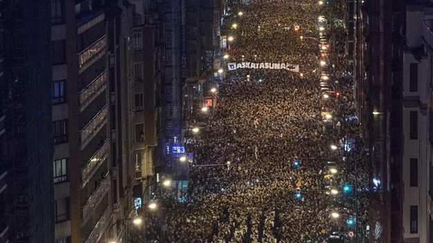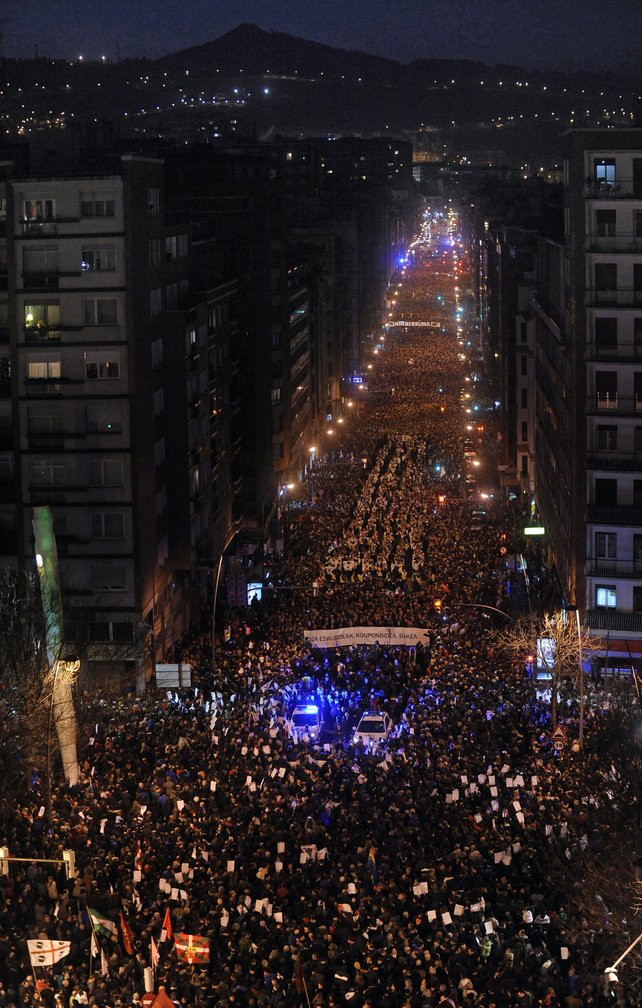 Το πλήθος διαδήλωσε ειρηνικά στο κέντρο της πόλης, ζητώντας την αποφυλάκιση τουλάχιστον 600 κρατουμένων της ΕΤΑ. Σύμφωνα με την αστυνομία, τουλάχιστον 110.000 διαδηλωτές είχαν συγκεντρωθεί. Τα συνθήματα που φώναζαν επανειλημμένως ήταν «αμνηστία για όλους» και «ελευθερία, ελευθερία».