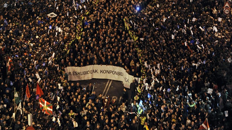 Περισσότεροι από 100.000 άνθρωποι διαδήλωσαν το Σάββατο το βράδυ στο Μπιλμπάο της Ισπανίας, για λογαριασμό των φυλακισμένων μελών της βασκικής αυτονομιστικής οργάνωσης ΕΤΑ και την ανεξαρτησία της περιοχής των Βάσκων