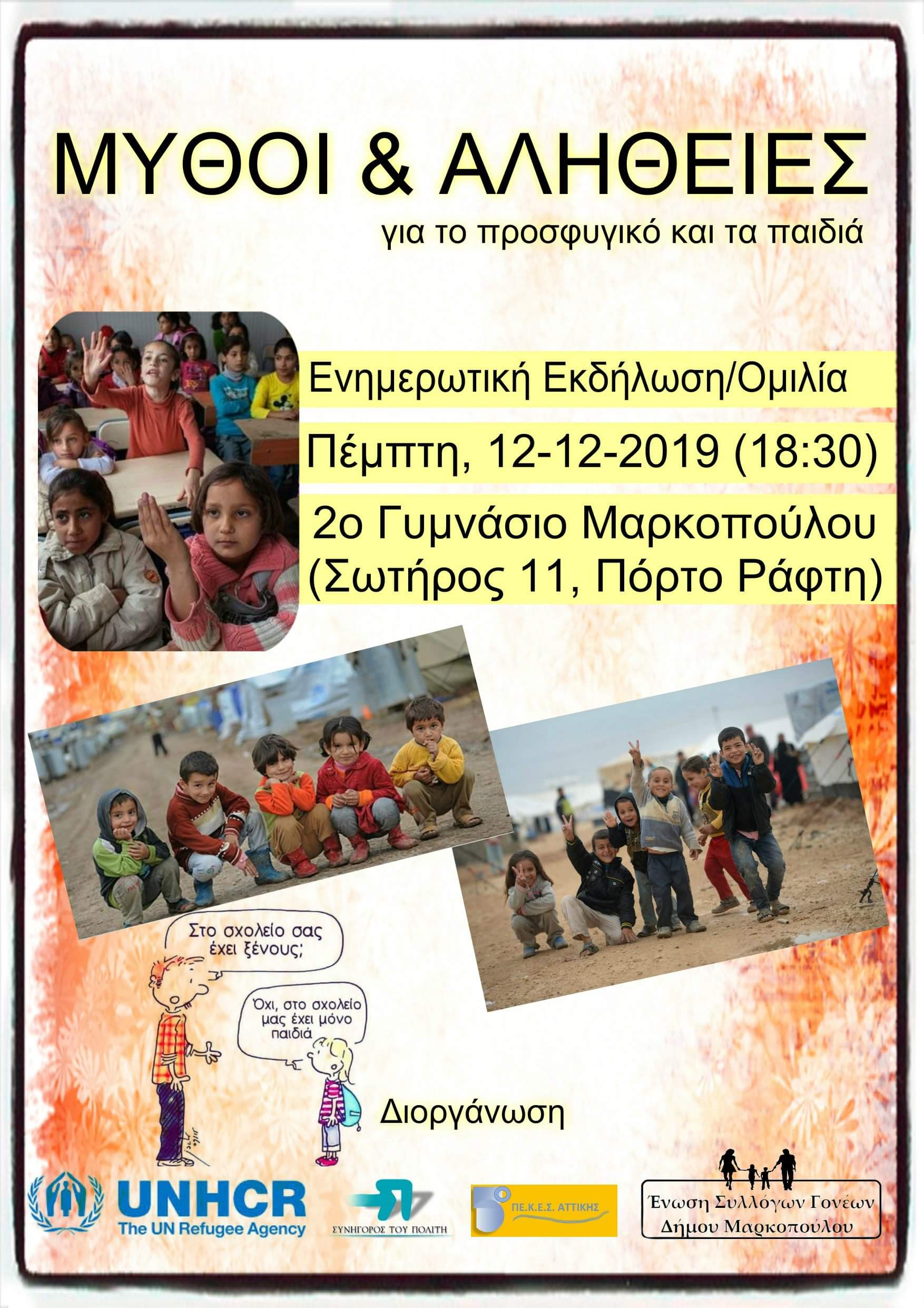 19:15 μ.μ. Εισήγηση Ύπατης Αρμοστείας του ΟΗΕ για τους Πρόσφυγες. Ομιλητές κ. Πασσά & κ. Διαούρτας