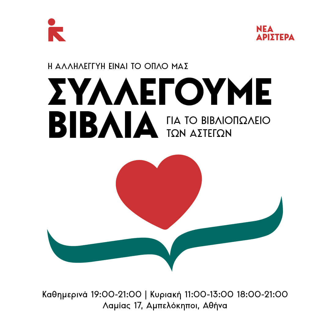 Ν. Ηλιόπουλος: Οι οργανώσεις της Νέας Αριστεράς στην Αθήνα ξεκινάνε την πρωτοβουλία συλλογής βιβλίων για την ενίσχυση του βιβλιοπωλείου των αστέγων