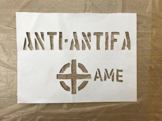 Μάλιστα ένα Α4 χαρτί το οποίο θα χρησιμοποιούνταν ως υλικό για στένσιλ, φέρει την επιγραφή «ΑΜΕ» δηλαδή «Ανένταχτοι Μαιάνδριοι Εθνικιστές».