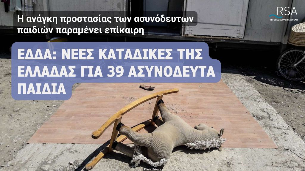 Στη συνέχεια τόνιζουν πως σύμφωνα με τα επίσημα στοιχεία, 430 ασυνόδευτα παιδιά παραμένουν σε ΚΕΔ και ΚΥΤ, ενώ μόλις πρόσφατα το Ευρωπαϊκό Δικαστήριο Δικαιωμάτων του Ανθρώπου χορήγησε ασφαλιστικά μέτρα σε 45 ασυνόδευτα παιδιά που διέμεναν στην ΚΕΔ Σάμου και σε 13 παιδιά που διέμεναν στην ΚΕΔ Λέρου.