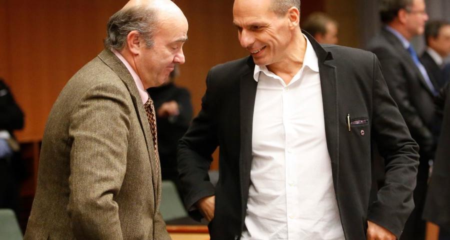 Ο Γ. Βαρουφάκης με τον Λ. Ντε Γκίντος στο Eurogroup