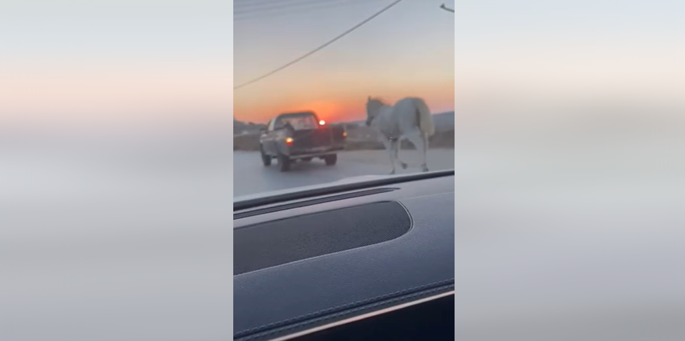 Αυτή τη φορά, βίντεο που αναρτήθηκε στο Facebook δείχνει αγροτικό αυτοκίνητο να σέρνει άλογο δεμένο με σκοινί στο πίσω μέρος του οχήματος, ενώ αναπτύσσει ταχύτητα στο δρόμο. Το περιστατικό συνέβη στην επαρχιακή οδό Μυκόνου – Άνω Μεράς, στο ύψος της Φτελιάς.
