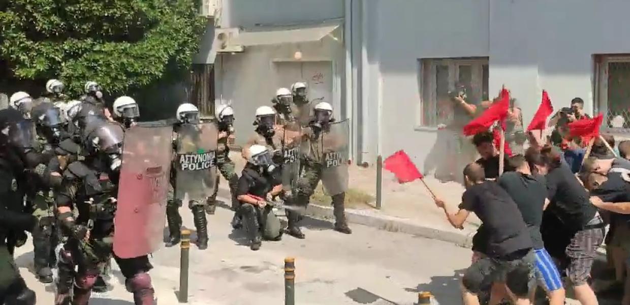 Οι αστυνομικές δυνάμεις απάντησαν με δακρυγόνα και κρότου λάμψης, ενώ οι διαδηλωτές στη συνέχεια πέταξαν πέτρες. Σύμφωνα με τις πρώτες πληροφορίες, έχουν γίνει μέχρι στιγμής δύο προσαγωγές.