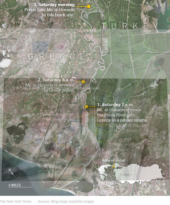 Το ρεπορτάζ παρουσιάζει και συνεντεύξεις με πρόσφυγες, όπως τον Κούρδο από τη Συρία, Σομάρ Αλ – Χουσείν, εκπαιδευόμενο μηχανικό λογισμικού, που περιγράφει τη διαδρομή του από τα τουρκικά λεωφορεία που τους μετέφεραν στα σύνορα, το πέρασμά του με βάρκα στην Ελλάδα και τη σύλληψή του από συνοριακούς φρουρούς λίγο αργότερα. Όπως καταγγέλλει, κρατήθηκε 24 ώρες κάτω από βροχή, χωρίς νερό και φαγητό, ενώ σε άλλο σημείο της εγκατάστασης ήταν απομονωμένες γυναίκες και παιδιά. «Για αυτούς, είμαστε σαν ζώα» σχολιάζει. Οι αρχές δεν επέτρεψαν καμία επικοινωνία ή πρόσβαση σε νομική υποστήριξη, αναφέρει ο Αλ Χουσείν, ενώ την επόμενη μέρα επαναπροωθήθηκαν από διάφορα σημεία του Έβρου προς την Τουρκία.