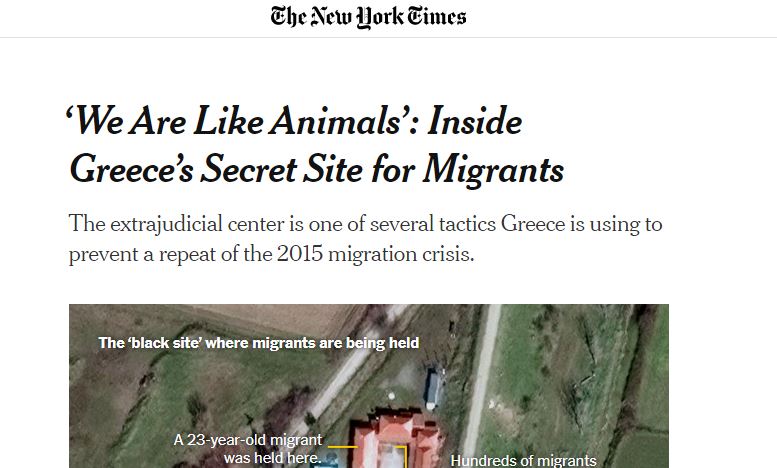 Παράλληλα, οι New York Times, που αναφέρουν τις διαψεύσεις της ελληνικής κυβέρνησης, μέσω του Στέλιο Πέτσα, όλων των περιστατικών βίας που έχουν δει το φως της δημοσιότητας, επικαλούνται έναν πρώην Έλληνα αξιωματούχο, με γνώση των αστυνομικών επιχειρήσεων στην περιοχή, που επιβεβαίωσε την ύπαρξη αυτού του κέντρου, το οποίο δεν καταγράφεται ως κέντρο κράτησης αλλά χρησιμοποιείται ανεπίσημα, σε εποχές υψηλών μεταναστευτικών ροών.