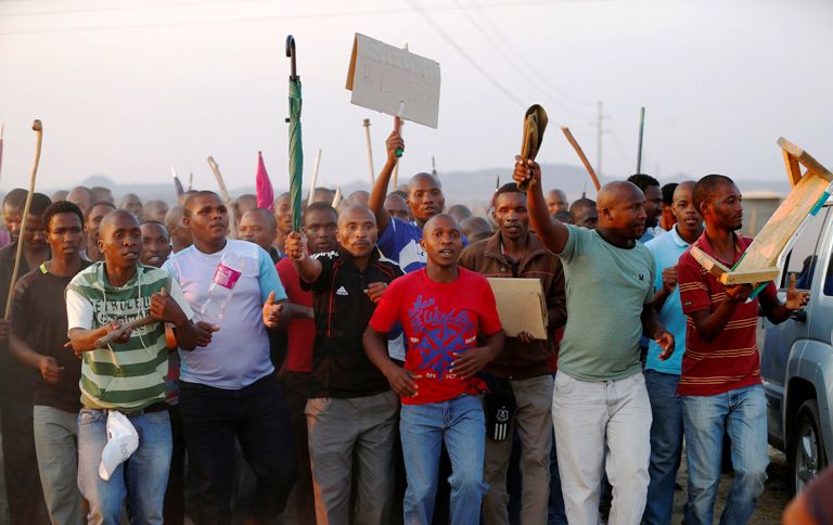 Περίπου 100 άτομα διαδήλωσαν έξω από το δικαστήριο στην Πρετόρια, ζητώντας την απελευθέρωση των εργατών.