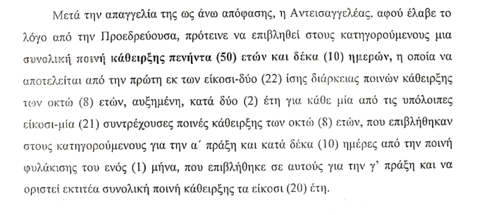 Και φτάνουμε στις 7 Απριλίου του 2022, στην κατ’ έφεση εκδίκαση της υπόθεσης, η οποία αναβάλλεται για τον Δεκέμβριο του 2022, με τους δύο κατηγορούμενους να παραμένουν στη φυλακή, παρά την προσκόμιση των απαραίτητων δικαιολογητικών από τους συνηγόρους για το αίτημα αναστολής έκτισης της ποινής, και παρά την πρόταση του εισαγγελέα, ο οποίος εμφανίστηκε θετικός προς την κατεύθυνση αυτή.