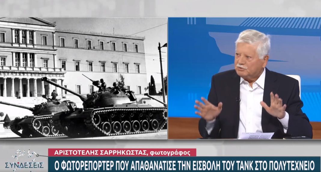 «Ακούω ακόμα τον ήχο των ερπυστριών, ακούω ακόμα αυτό το Εδώ Πολυτεχνείο, εδώ Πολυτεχνείο και ακούω ακόμα τις φωνές των φοιτητών μέσα από τα κάγκελα», είπε μιλώντας στην ΕΡΤ ο Αριστοτέλης Σαρρηκώστας. Ήταν τότε 30 χρόνων και εργαζόταν για το Associated Press. «Έπεισα τον διευθυντή μου να μπούμε στο αυτοκίνητό του και να κατέβουμε, επειδή ήθελα να έχω κάποιον μαζί μου, γιατί να κυκλοφορείς εκείνες τις μέρες, τις ώρες».